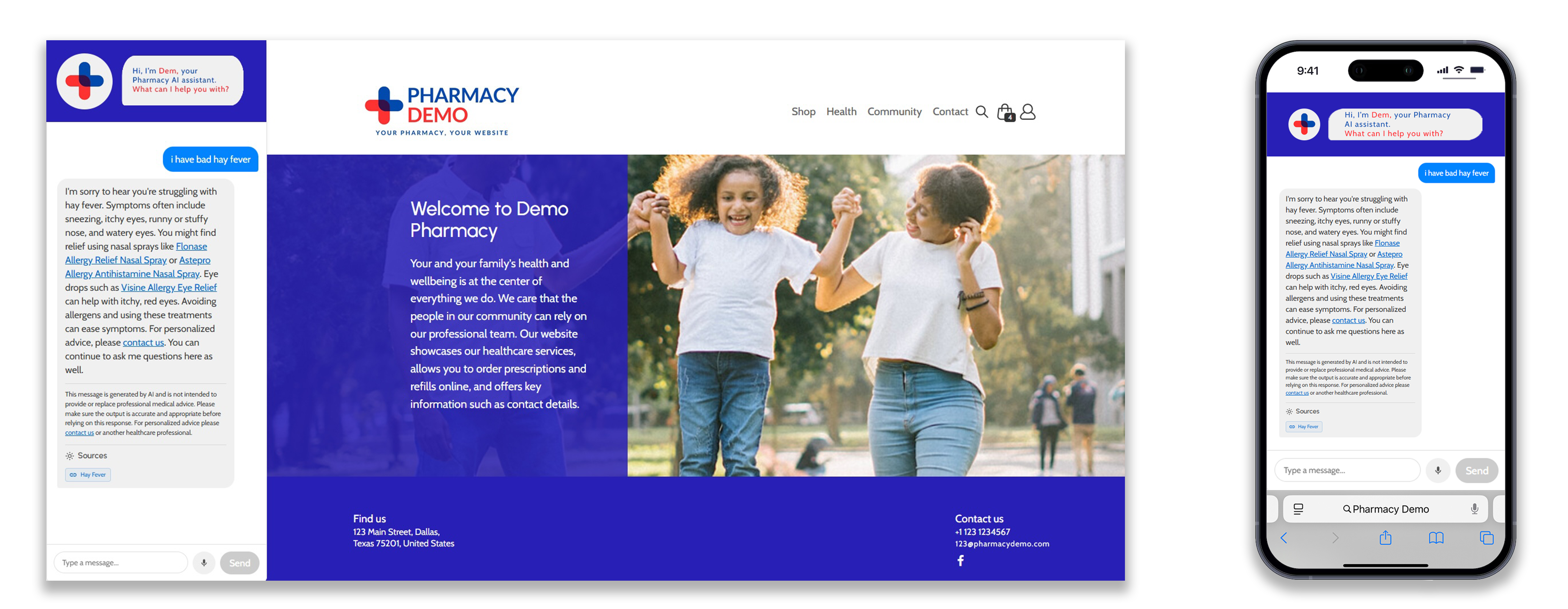 Storbie AI Assist helps your pharmacy answer questions, take bookings, and refill prescriptions - instantly.